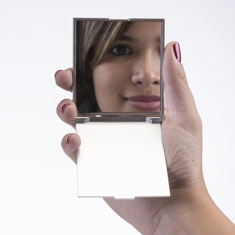 Espelho de formato retangular sem aumento com estrutura feita em plástico liso